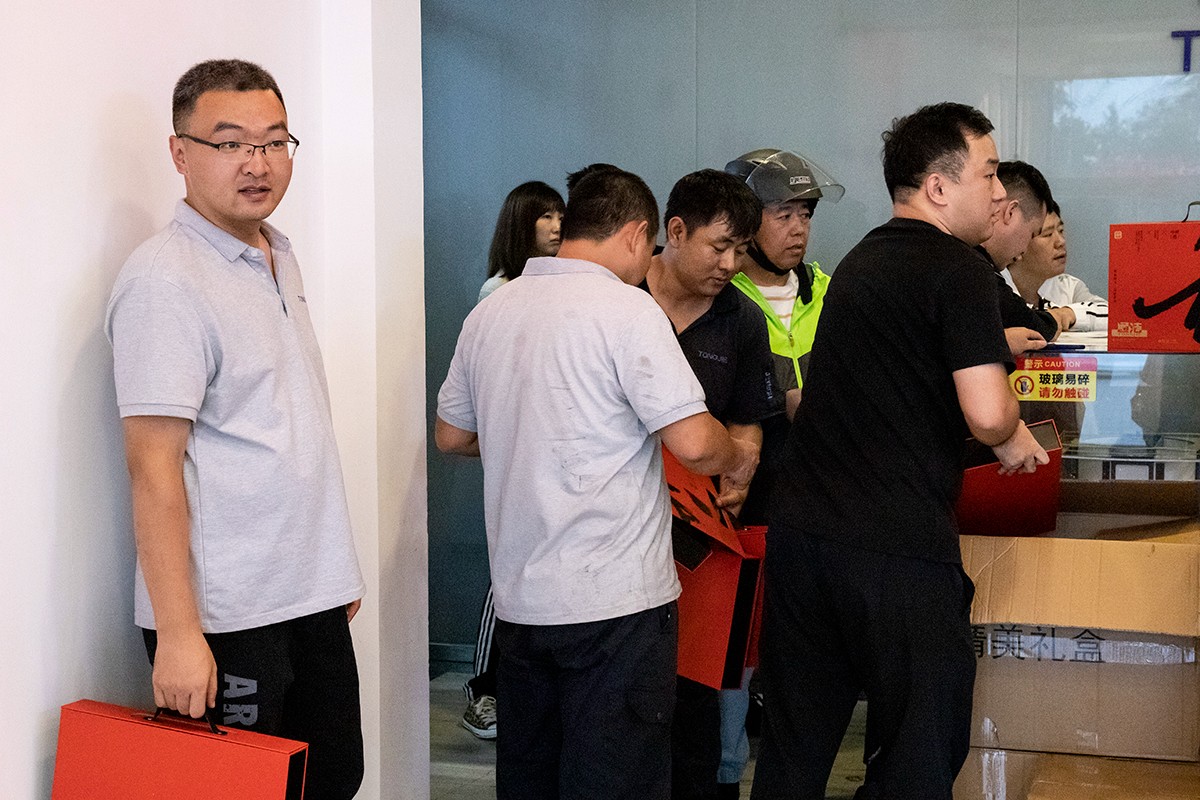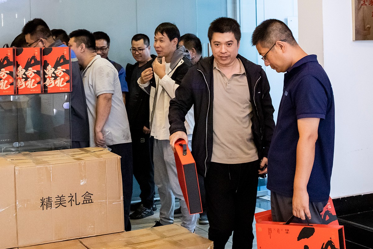 礼品发放处,工作人员早早地将一份份礼品摆放整齐,等待着为同事们送上这份充满心意的中秋祝福。